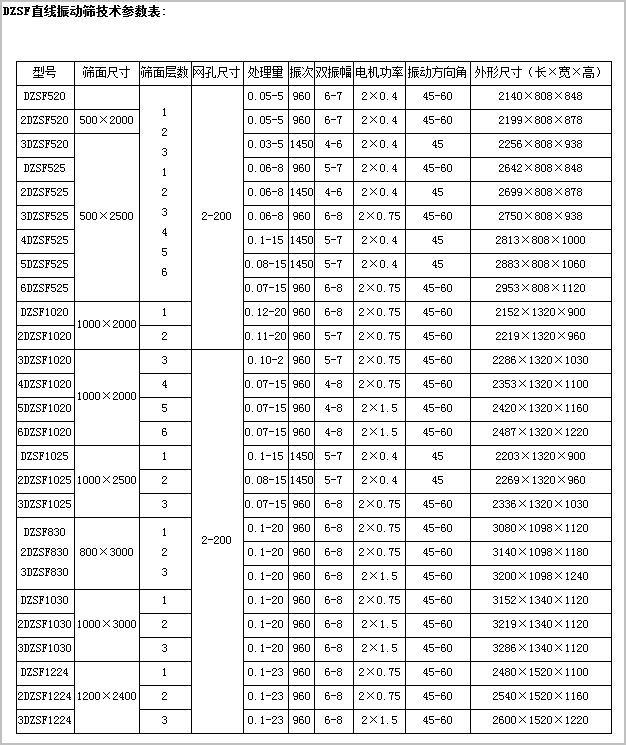 注意:該篩機(jī)是一種全封閉型的直線振動(dòng)型振動(dòng)篩,根據(jù)客戶的要求不同,可以根據(jù)用戶的不同要求定制設(shè)備.如需購買設(shè)備請(qǐng)咨詢公司服務(wù)人員,此表參數(shù)為標(biāo)準(zhǔn)篩機(jī)參數(shù),僅供選型參考.