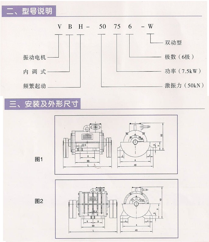 VBH系列頻繁起動振動電機(jī),功率1.5~11KW,4、6極,激振力為10~75KN,共計(jì)6個(gè)規(guī)格。