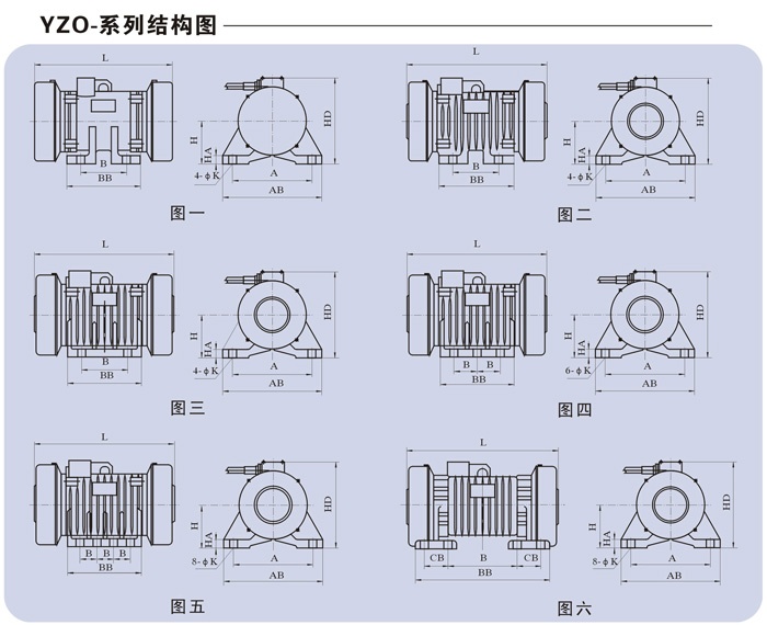 型 號 | 額定激振力 | 額 定 功 率 | 額 定 電 流 | 安 裝 尺 寸 | 安裝螺栓尺寸 | 重量(KG) | 外 型 圖 號 | |||||||||