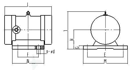 | 型號(hào) | 激振力(KN) | 功率(kw) | 電流(A) | 振頻(r/min) | 安裝尺寸(mm) | 外形尺寸(mm) | 重量(Kg) | ||||||||
