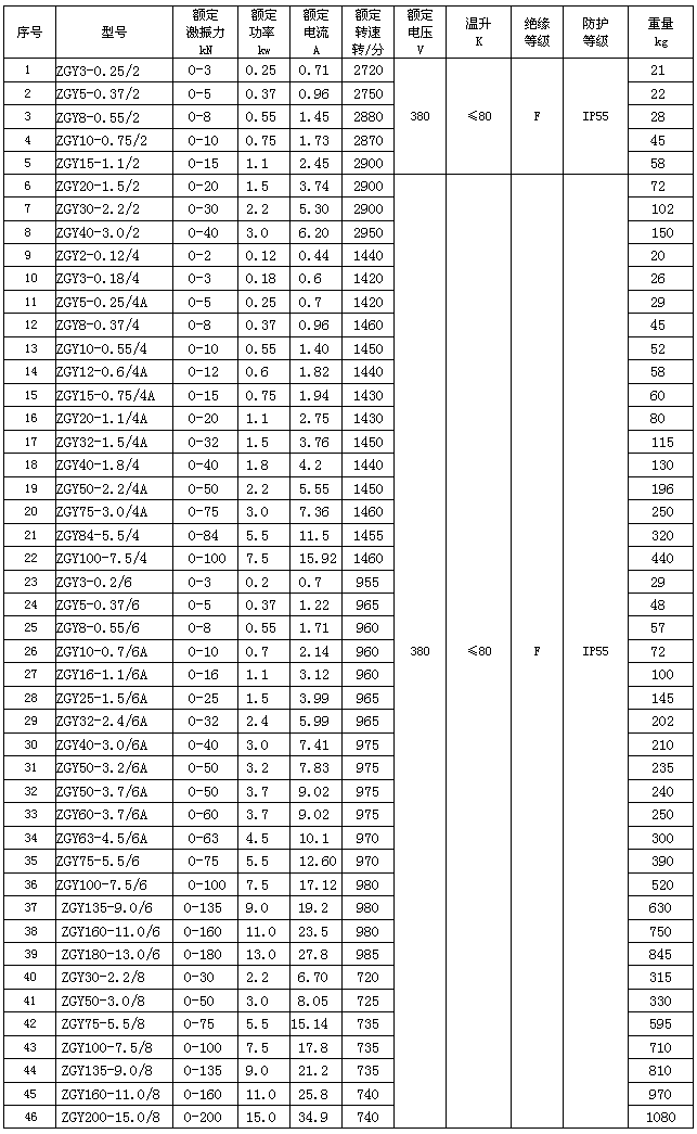ZGY系列振動(dòng)電機(jī)技術(shù)參數(shù):