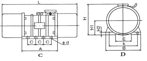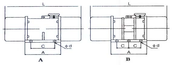 | 型號 | 激振力 (KN) | 轉(zhuǎn)速 (Rpm) | 額定 功率 (Kw) | 額定 電流 (A) | 安裝尺寸 (mm) | 外形尺寸(mm) | |||||||||