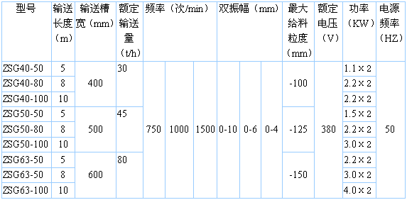 ZSG型慣性振動輸送機主要技術(shù)參數(shù)